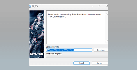 หลังจากดาวน์โหลดตัวเกมเต็ม หรือตัวเกมย่อ, คลิก PointBlankinstall.exe