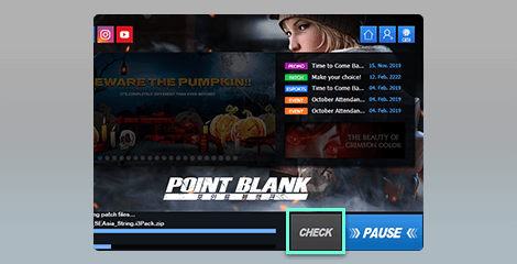 ถ้า Point Blank ไม่สามารถเล่นได้หรือหากมีปัญหากรุณาคลิกที่ปุ่ม ตรวจสอบ