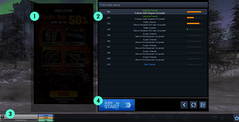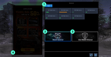 ในโหมดนี้ผู้เล่นสามารถค้นหาเซิร์ฟเวอร์และช่องที่พวกเขาต้องการ 3มีแบนเนอร์ที่แจ้งข่าวล่าสุด
