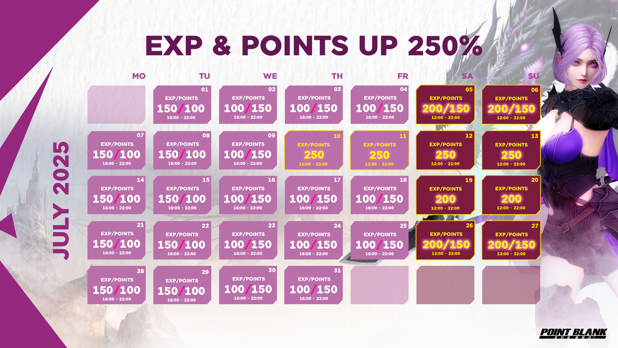POINT BLANK WEEKLY EVENT UPDATE อัปเดตประจำวันที่ 23 กรกฎาคม 2568 รายละเอียดการอัปเดตประจำสัปดาห์ ไฮไลท์ ใหม่! พบกับกิจกรรมตั๋วทอง (Gold Ticket Event) มาพร้อมกับของแลกสุดพิเศษ สามารถดูรายละเอียดกิจกรรมได้ที่นี่ (23 กรกฎาคม - 5 สิงหาคม 2568)