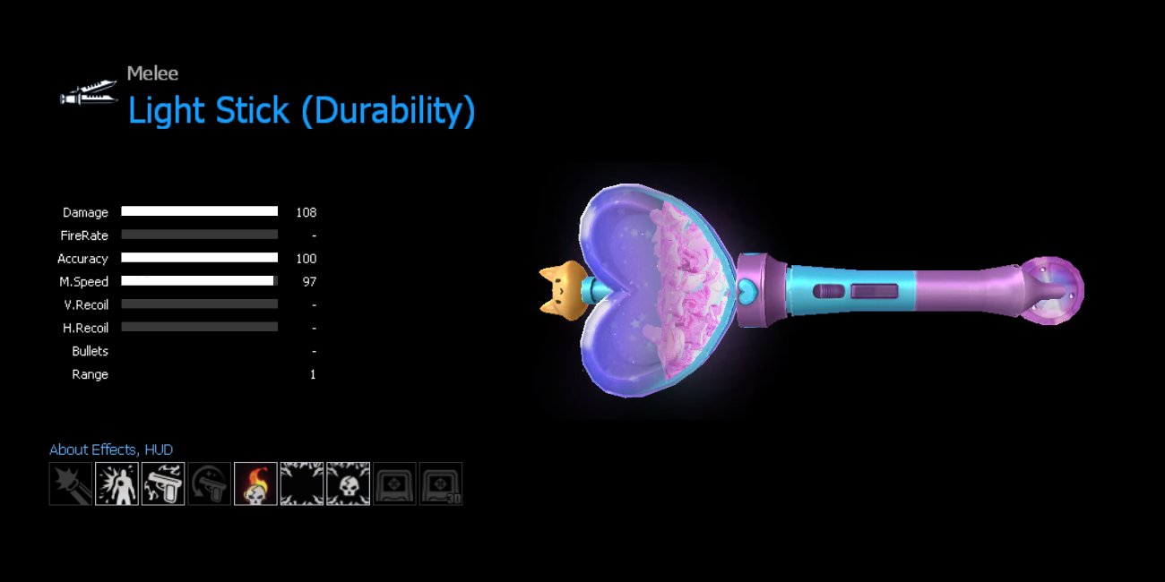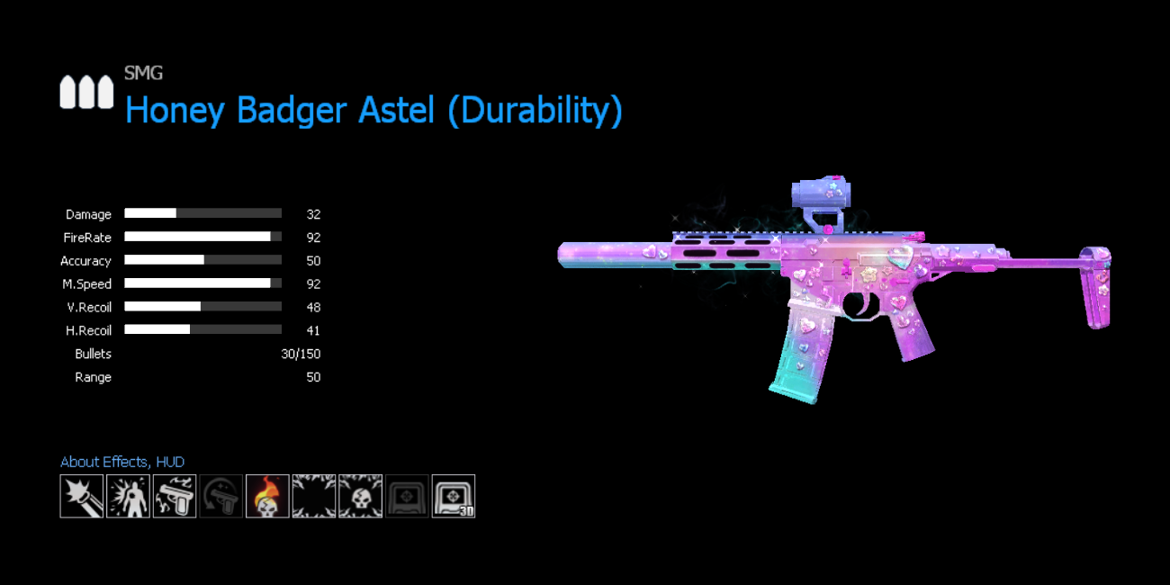 หมายเหตุ - Honey Badger Astel (ถาวร) และ Light Stick (ถาวร) มีอัตราการซ่อม 200 Point ต่อ 1% - ตัวละคร (Astel Red Dasom และ Astel Blue Dasom) จาก Battle Pass มีอัตราการซ่อม 200 Point ต่อ 1%