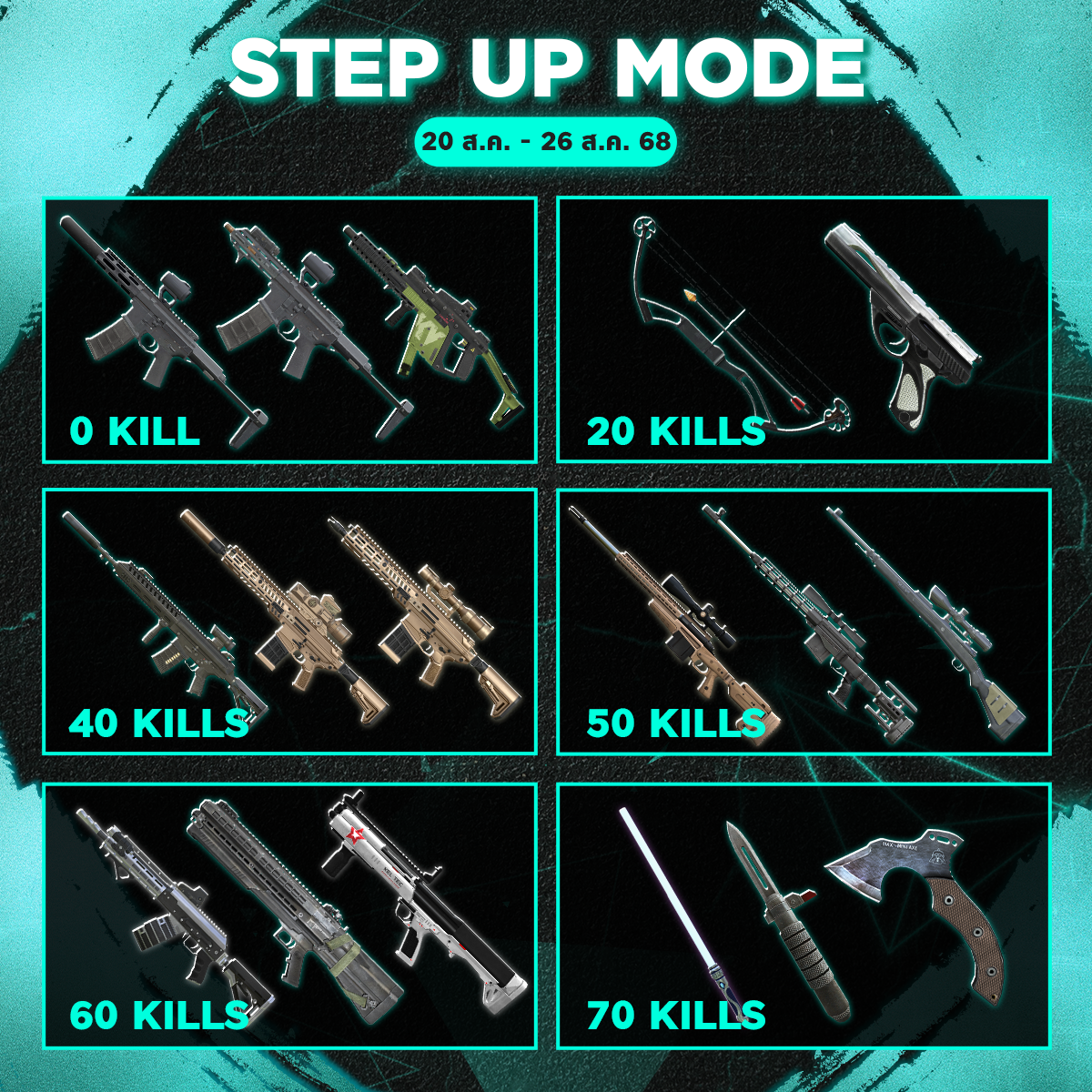 =============================== Step-up Special New Era Weapons Event ระยะเวลากิจกรรม : 20 - 26 สิงหาคม 2568 ทำการเปลี่ยนอาวุธในโหมด Step-up ให้เป็นอาวุธยุคใหม่ สุดทันสมัย