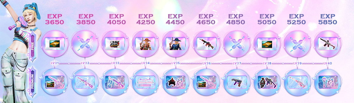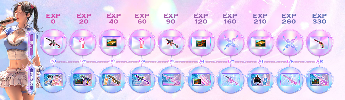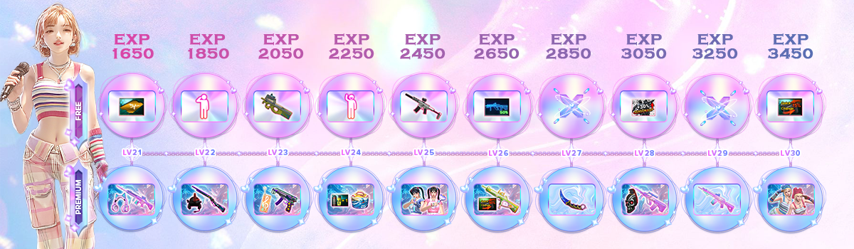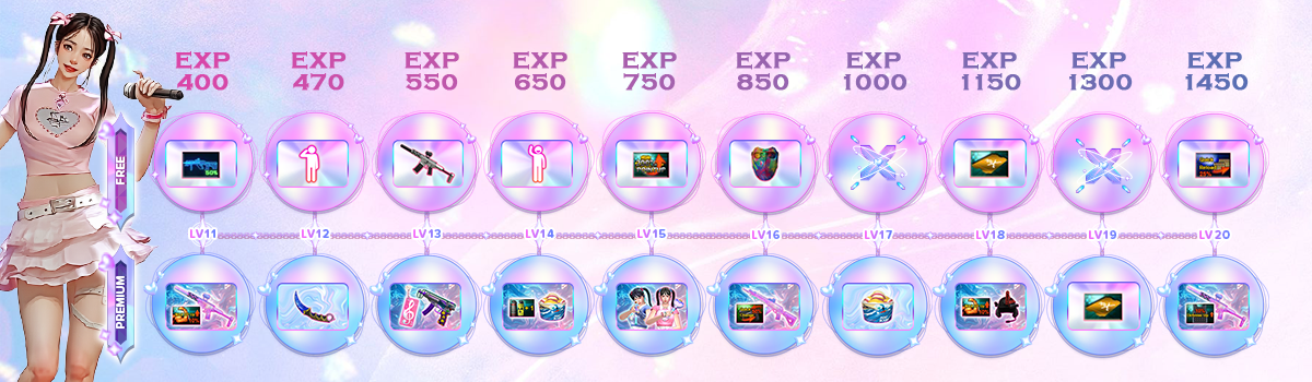 Battle Pass : Astel Idol สเตจกล้าท้าฝัน ระยะเวลาแบทเทิลพาส: 20 สิงหาคม - 8 ตุลาคม 2568 เงื่อนไขเข้าร่วม Battle Pass 1. สะสม Season EXP ตามที่กำหนดเพื่อปลดล็อคระดับ Battle Pass เพื่อเพิ่มรางวัลพรีเมี่ยมของคุณ 2. ยิ่งระดับ Battle Pass สูงเท่าไร ก็จะยิ่งได้รับของพรีเมี่ยมมากขึ้นเท่านั้น 3. ผู้เล่นทุกคนสามารถได้รับของรางวัลจาก Battle Pass ได้ฟรีที่ช่องของรางวัลแถบ Free Reward 4. สำหรับรางวัลพรีเมียม ผู้เล่นจะต้องปลดล็อคด้วย 18,000 PB Cash เพื่อรับรางวัลพรีเมี่ยมอีกมากมาย!!! 5. Season EXP จากแมตช์ปกติจะถูกจำกัดอยู่ที่ 1,500 EXP ต่อวัน ( รีเซ็ตเวลา 00.00 น. ) 6. เมื่อระยะเวลา Battle Pass สิ้นสุดลง ผู้เล่นทุกคนจะไม่สามารถเพิ่มเลเวล Battle Pass ได้ 7. เมื่อผู้เล่นถึงระดับ Battle Pass ที่กำหนด ร้านค้าจะปลดล็อคไอเทมหายากใน Battle Pass Premium Shop คู่มือปลดล็อกของรางวัลพรีเมียม ![]() เงื่อนไขการอัพเลเวล Battle Pass การอัพเลเวล Battle Pass สามารถรับได้ทั้งหมด 3 วิธี ดังนี้ 1. จากการเข้าเล่นเกมปกติ โดยจะได้รับ Season Pass EXP ซึ่งเป็นจำนวน 10% ของ EXP ที่ได้รับจากการเล่นเกม แต่ละแมทช์