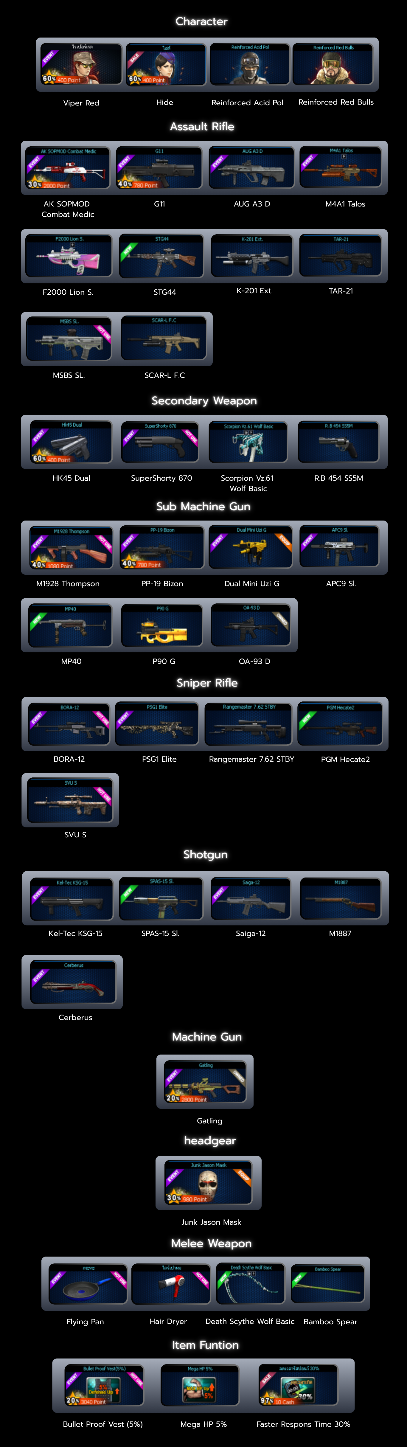 อาวุธใช้ได้ : เฉพาะที่ขายเป็น POINT เท่านั้น