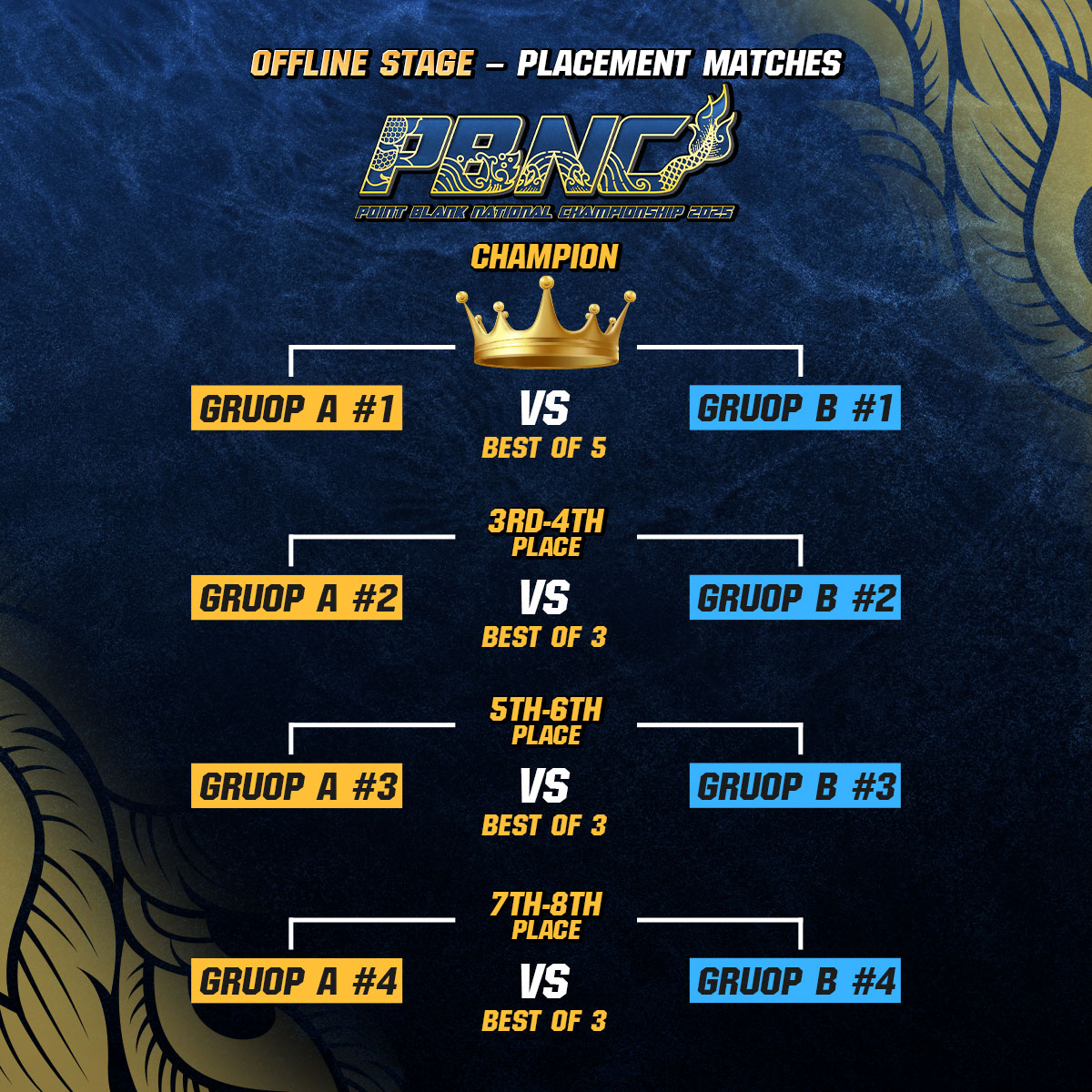 เมื่อจบรอบ Group Stage ทั้งสองกลุ่ม (Group A และ Group B) - จะเข้าสู่การแข่งขัน รอบออฟไลน์ เพื่อชิงอันดับกันอย่างเป็นทางการ