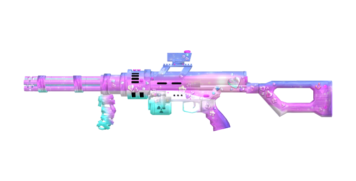 Gatling Astel is a Battle Pass exclusive item featuring a dazzling pastel-acrylic design that blends pure charm with vibrant elegance, making you stand out on the battlefield.